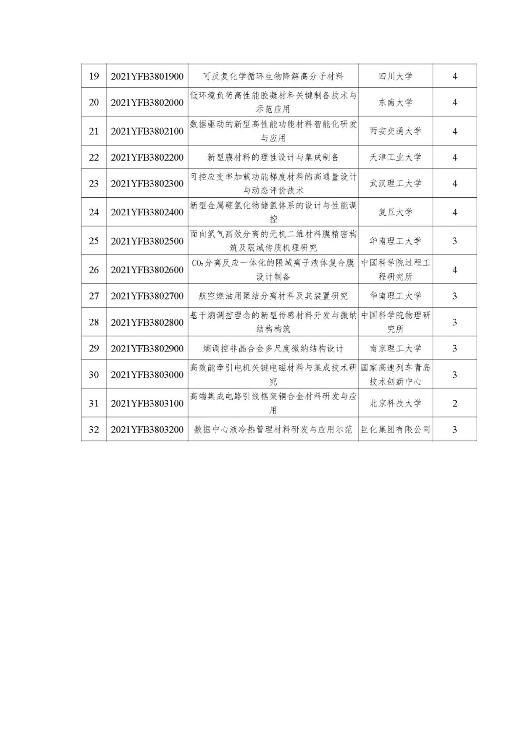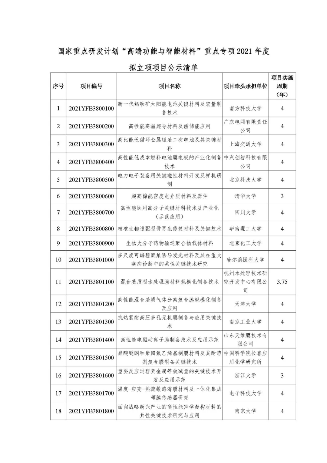 根据《国务院关于改进加强中央财政科研项目和资金管理的若干意见》(国发〔2014〕11号)、《国务院关于深化中央财政科技计划(专项、基金等)管理改革方案的通知》(国发〔2014〕64号)和《财政部科技部关于印发<国家重点研发计划资金管理办法>的通知》(财教〔2021〕178号)等文件要求,现对“高端功能与智能材料”重点专项2021年度拟立项项目信息进行公示。